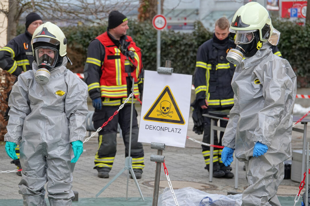 Heute Nachmittag kam es gegen 13.40 Uhr in Freital Pesterwitz zu einem Gefahrguteinsatz der Feuerwehr. Zunächst führte die Polizei eine Maßnahme in der Wohnung eines Mehrfamilienhauses am Gutshof durch. Dabei entdeckten die Beamten eine größere Menge verdächtiger Chemikalien in der Wohnung. Die Beamten forderten daraufhin die Feuerwehr an. Die Feuerwehr Freital und der Gefahrgutzug des Landeskreises rückten an, um die Substanzen sicherzustellen. 15 Bewohner des Hauses mußten ihre Wohnungen verlassen und wurden durch das DRK betreut. In Schutzanzügen und unter Atemschutz bargen die Feuerwehrleute die Chemikalien und übergaben sie der Polizei. Anschließend konnten die Bewohner in das Haus zurückkehren. Über 40 Einsatzkräfte waren im Einsatz. Der Dorfplatz war während des Einsatzes gesperrt.